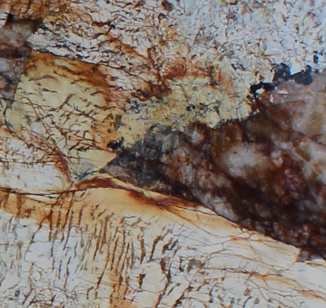 В гранитных плитах Patagonia при внимательном рассмотрении удается разглядеть практически всю палитру красок. Несмотря на то, что главенствующим оттенком остается бежевый, природные включения оттеняют его множеством вариантов тонов. Здесь можно увидеть золотистые, серебряные, коричневые, черные и иные вкрапления. Крупные фрагменты включений выделяются, создают эффект волшебной мозаики, в которой каждый видит свой особенный сюжет. При разном освещении картинка меняется.