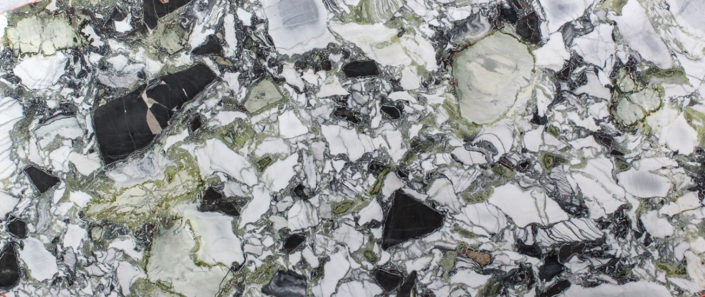 White Beauty — это экзотический мрамор из Китая, характеризующийся крупными белыми, черными, серыми и зелеными полевыми шпатами. Эта уникальная структура идеально подходит для декорирования как внутри помещений, так и снаружи.
