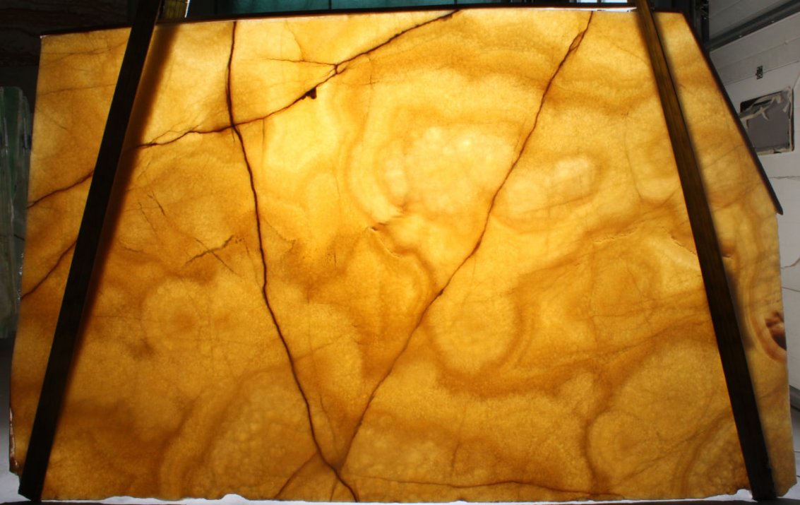Бежевый оникс Ambar обладает насыщенным терракотовым цветом с голубыми и жёлтыми вкраплениями. Прекрасно сочетается с мебелью бежевых тонов. Наличие голубых вкраплений делает оникс Ambar гармонично подходящим к таким помещениям как ванная и бассейн.